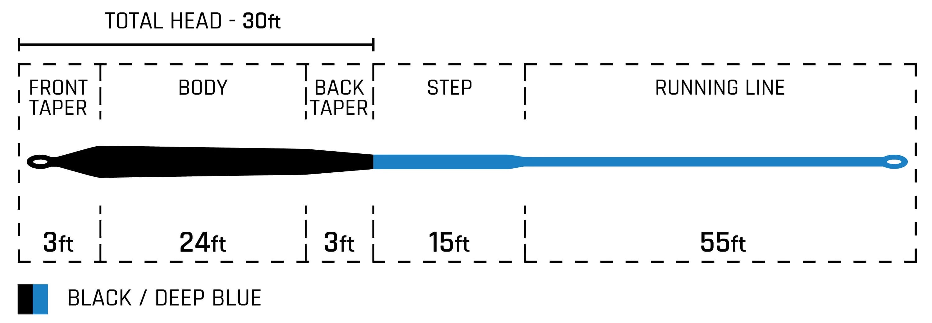 The 50+ Series Heavy Sink is built for taming the most demanding saltwater offshore and freshwater jungle species. This line is built on fifty-pound braided core for ultimate stopping power and durability. This line features a 30FT Type 8 (7-8 IPS) head into intermediate running line.